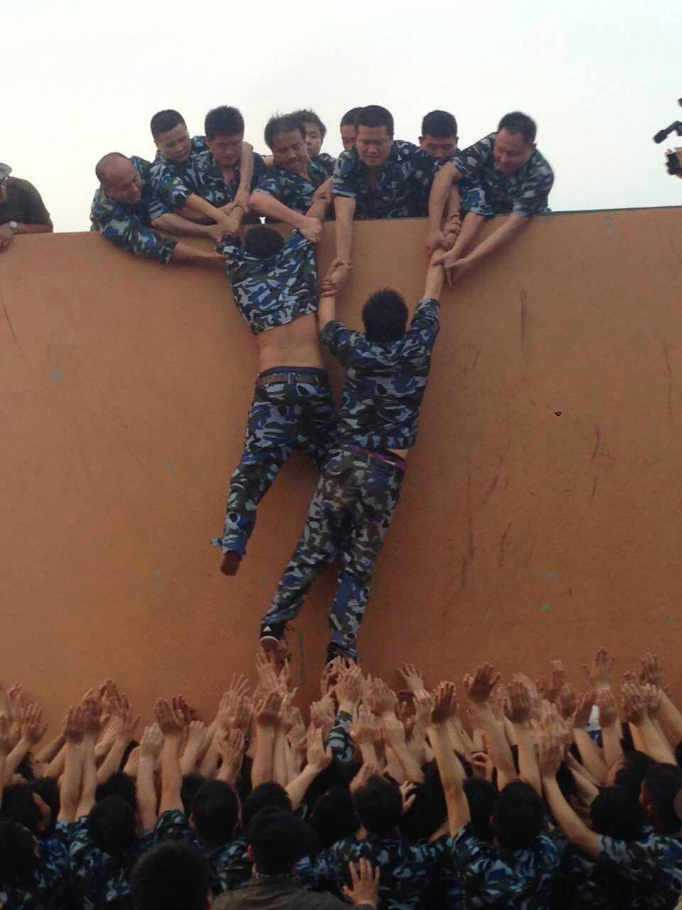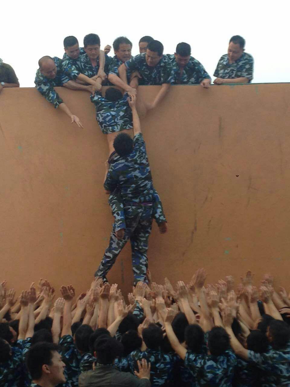 众志成城,200多人共同努力,翻越4.2米高墙!